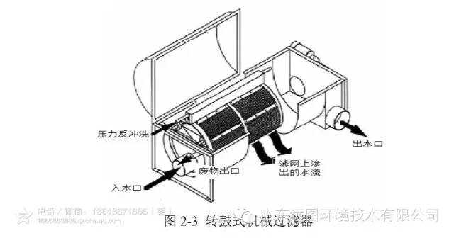 转鼓式微滤机用于去除60μm以上的固体颗粒物质(TSS)。微滤机最大的特点是拥有自动清洗筛面的功能,可满足系统连续运行要求;