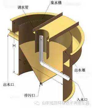 设计的关键是悬浮物的沉降流速过流流速应低于4m3/min,适宜流速为1m3/min;单位面积的流量为1.0~2.7m3/m2h。