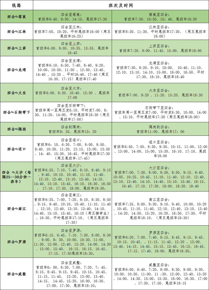 四会农村客运班次时间表
