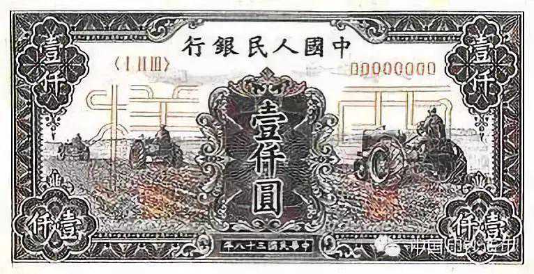 五万元新华门。北京印钞厂承印,印刷于1950年,