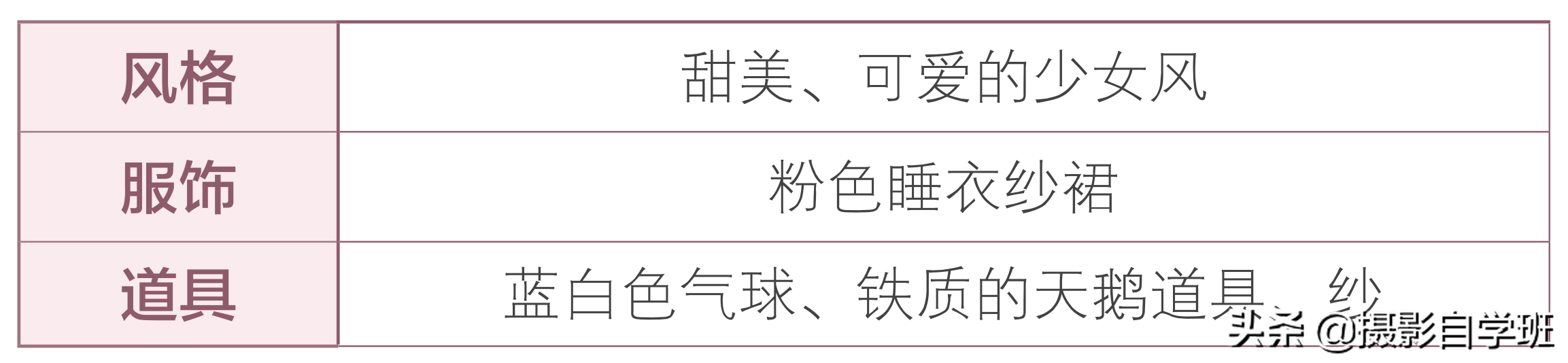 场景内所有的元素,都应该和照片想要传达的主题相关,所以在添加道具和元素的时候,需要考虑这个元素是否和拍摄风格,以及要表达的主题有关联。