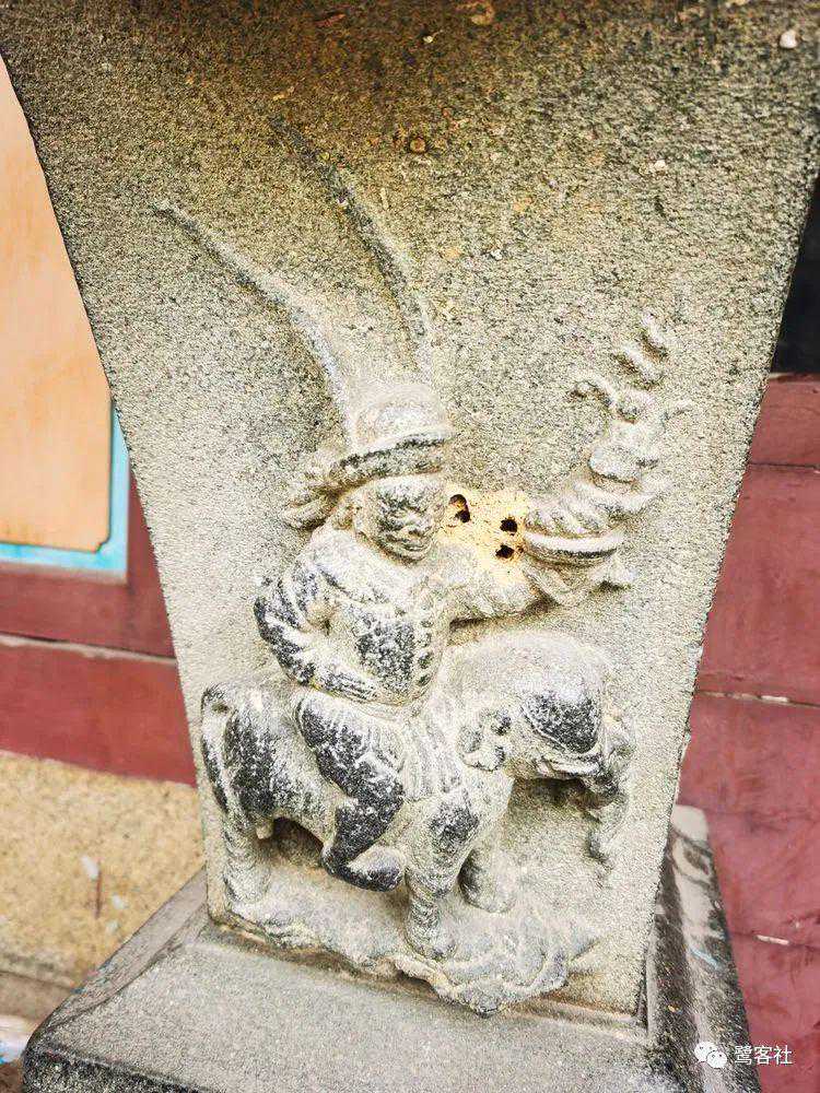 有意思的是,2020年12月,我在同安丙洲始建于明代的昭应宫一下子发现了四件胡人骑兽,其中,两件“胡人骑狮"、一件“胡人骑象”、一件“胡人骑牛”。这次发现,是续正一宫之后,“胡人骑狮”、“胡人骑象”的“厦门的第二次发现”(“胡人骑牛”是首次发现),推翻了前述“仅正一宫尚有”的说法。昭应宫的胡人骑兽像,同样有胡人献宝像的特征。