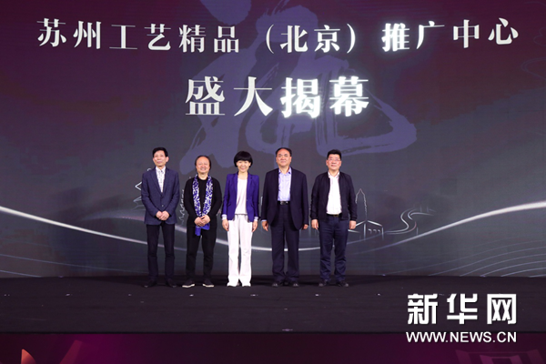中国工艺美术协会副会长马达,中国工艺美术协会·中国艺品网、中艺互联商务科技(北京)股份有限公司副总经理陈娟,为“中国艺品网·苏州工作站”授牌。中外文化交流中心副主任李蕊,中国工艺美术协会执行会长周郑生,中国民间艺术家协会副主席吴元新,苏州市文化广电旅游局局长李杰,苏州市玉石雕刻行业协会会长马建庭,为“苏州工艺精品(北京)推广中心”揭幕。“中国艺品网·苏州工作站”和“苏州工艺精品(北京)推广中心”建立,将通过凝聚苏州工艺团队的智慧和力量,为创新创造更多更好的工艺成果,为进一步确立苏州传统工艺品牌,为进一步扩大苏作工艺的宣传和传播开辟更为宽广的平台。