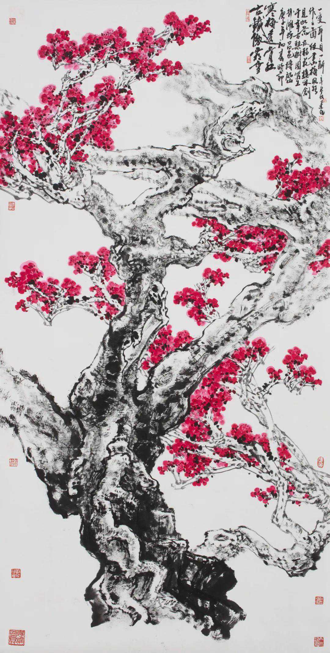 赵建民《古铁傲霜雪寒梅透骨红》246×123cm2021年