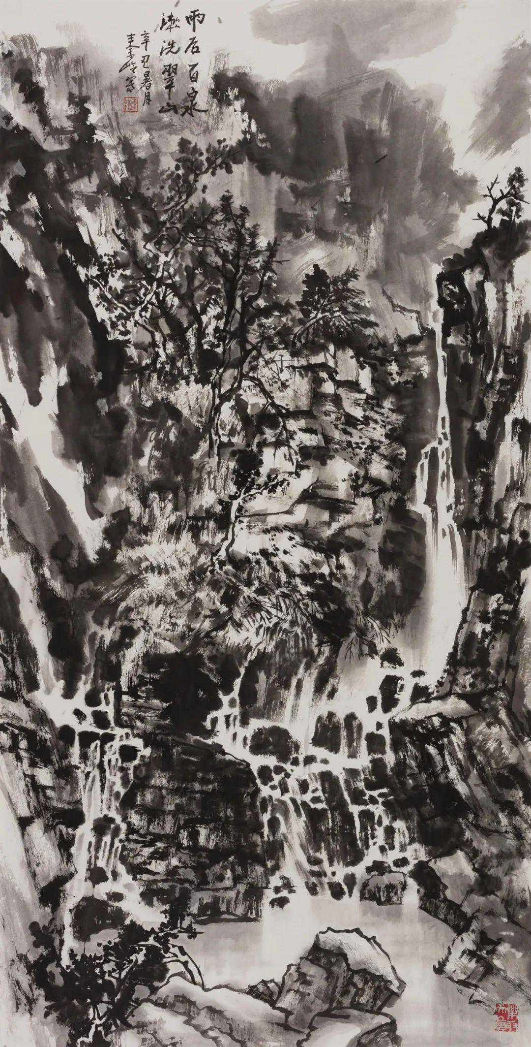 秦岭《雨后百泉》139×68cm2021年