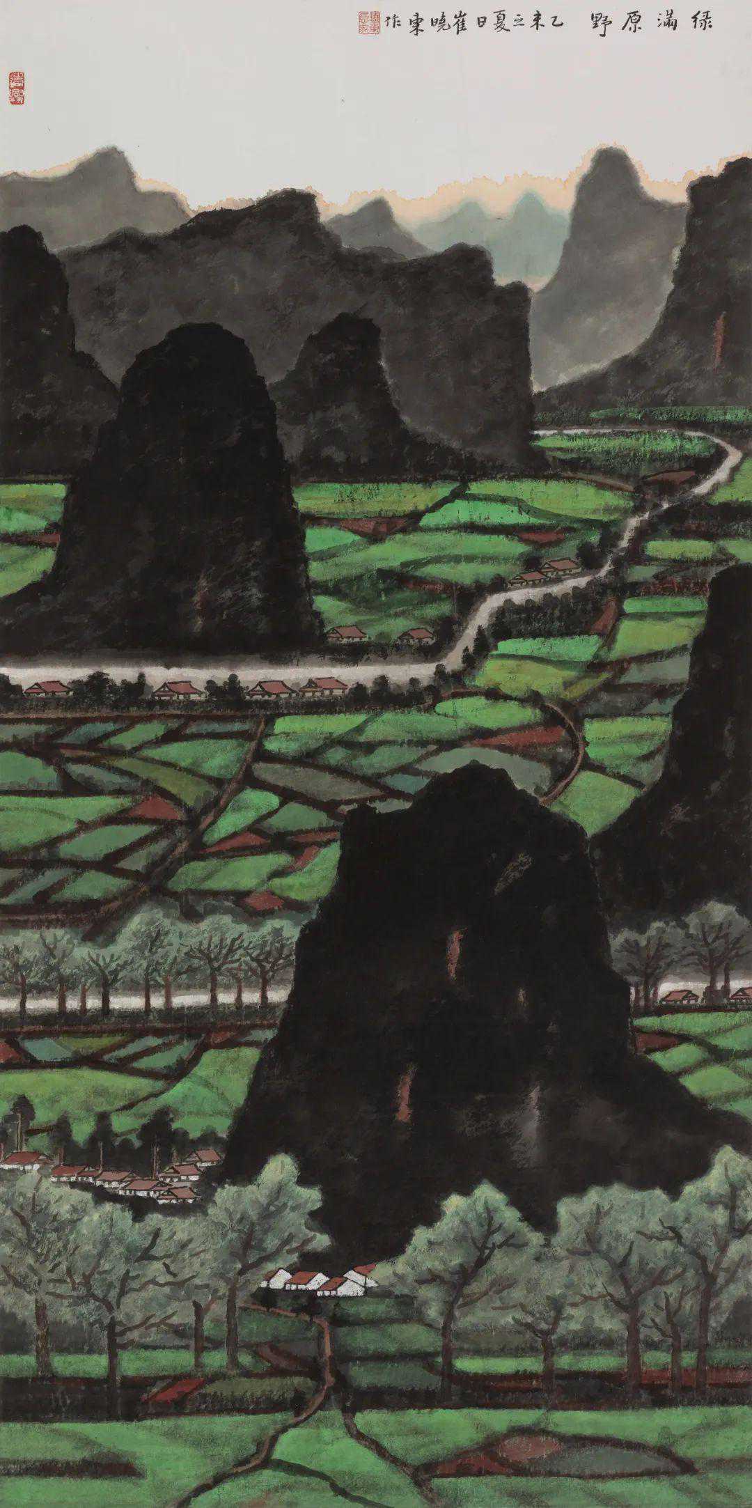 崔晓东《绿满原野》137×68cm2015年
