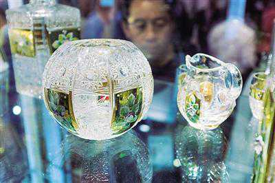 捷克馆展示的玻璃及水晶制品。记者李盛明摄/光明图片