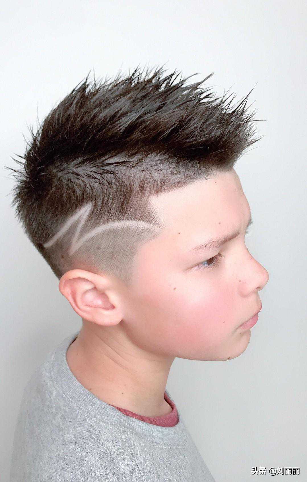 这一种酷炫飞机头,就是把头顶u型区的头发保留足够的长度,尤其是刘海区的头发略微再长一点点,然后整体用造型产品把这部分头发抓起来,形成向上的纹理,很有朝气,帅气十足,酷范非凡,怎么看都有型,就是妈妈们可能要辛苦一点,每天早上都需要打理