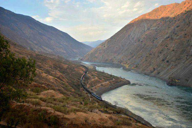 列车行驶在成昆线金沙江畔。当年有多个铁道兵师奋战在金沙江沿岸。