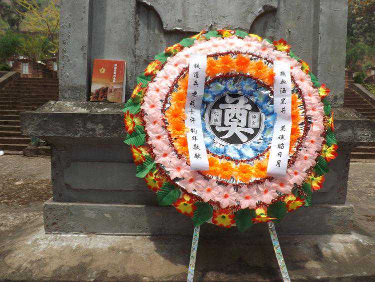 徐文科烈士墓墓前可见路客祭奠的香烟