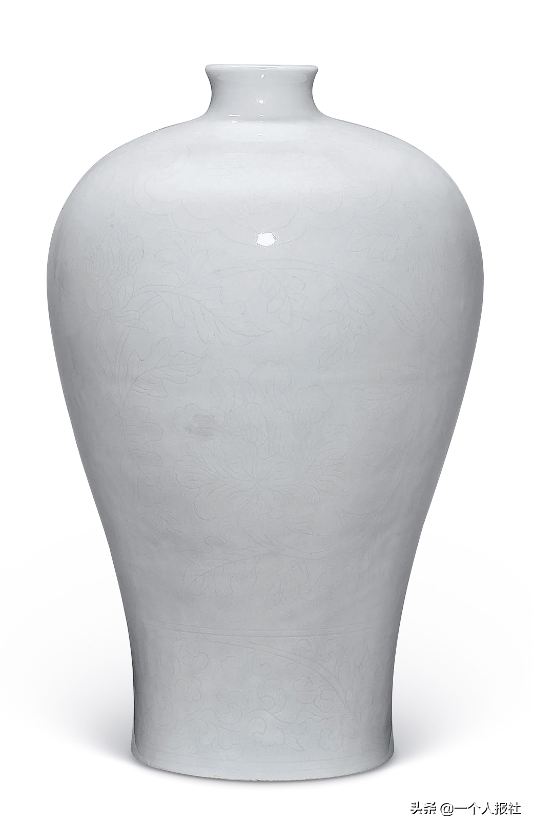 明永乐甜白釉暗刻缠枝牡丹纹梅瓶