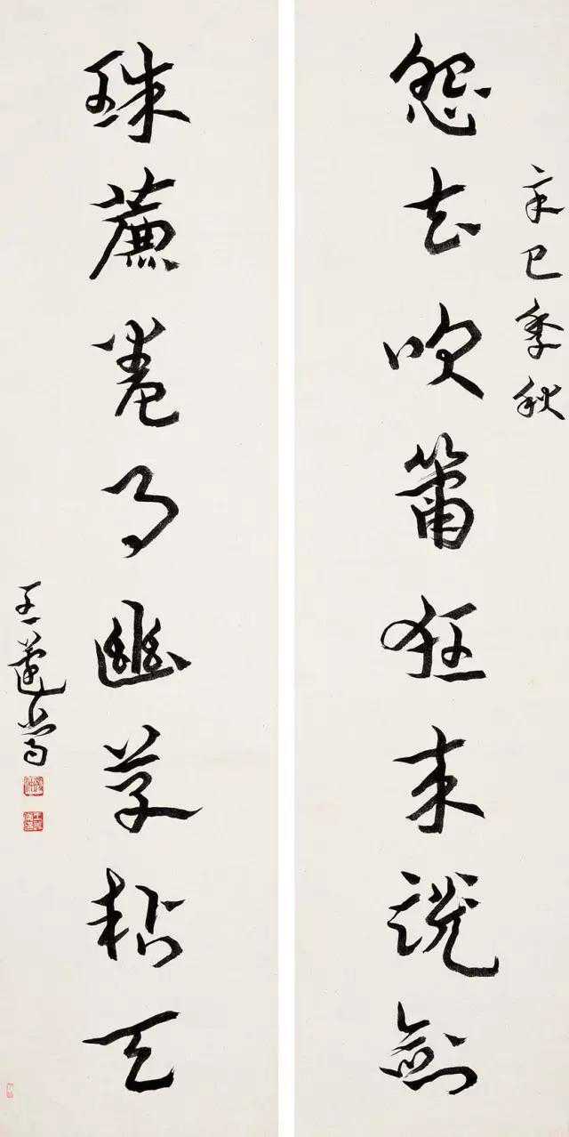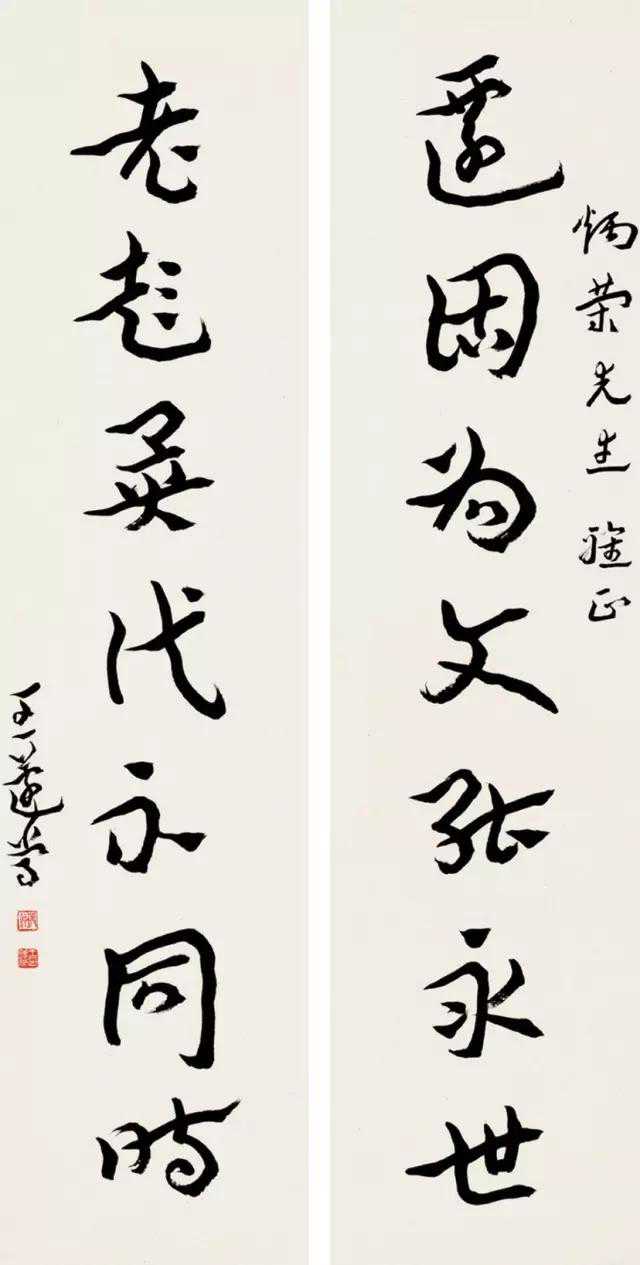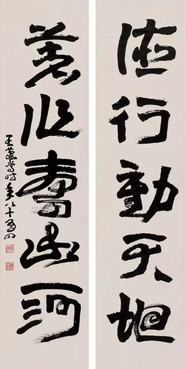 在沈增植的启蒙与指导下,王蘧常深受其“学章草,必须从汉隶出,赵子昂所书,虽着意发泼,乃是唐宋人笔法,非其至也”的碑学观念影响。王蘧常的碑学观念侧重点在法古层面,因而,他并不注重碑法的侧利劲折、雄起角出。他对魏碑一味注重方笔表现,兴趣不大,而是较为注重笔法,结撰的古意、浑穆。沈增植之于碑学,侧重点在中古——魏晋南北朝,而王蘧常的碑学侧重点在上古三代秦汉。沈增植书法重在翻古求新,托古改制;王蘧常书法则意在以古为新,厚古薄今。从这个意义上说,王蘧常并没有完全走一条与沈增植相同的碑学之路。