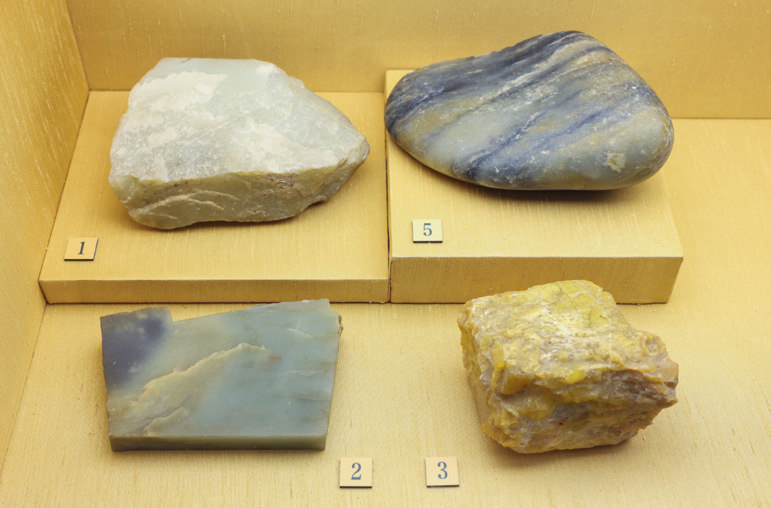 展览尾声的“镂冰雕琼”部分,还专门展出了20余件中国地质博物馆收藏的矿石标本,从材料和工艺角度介绍宝玉石知识及制玉技术发展。