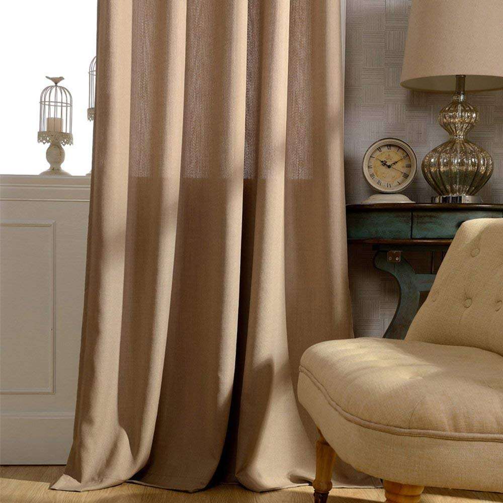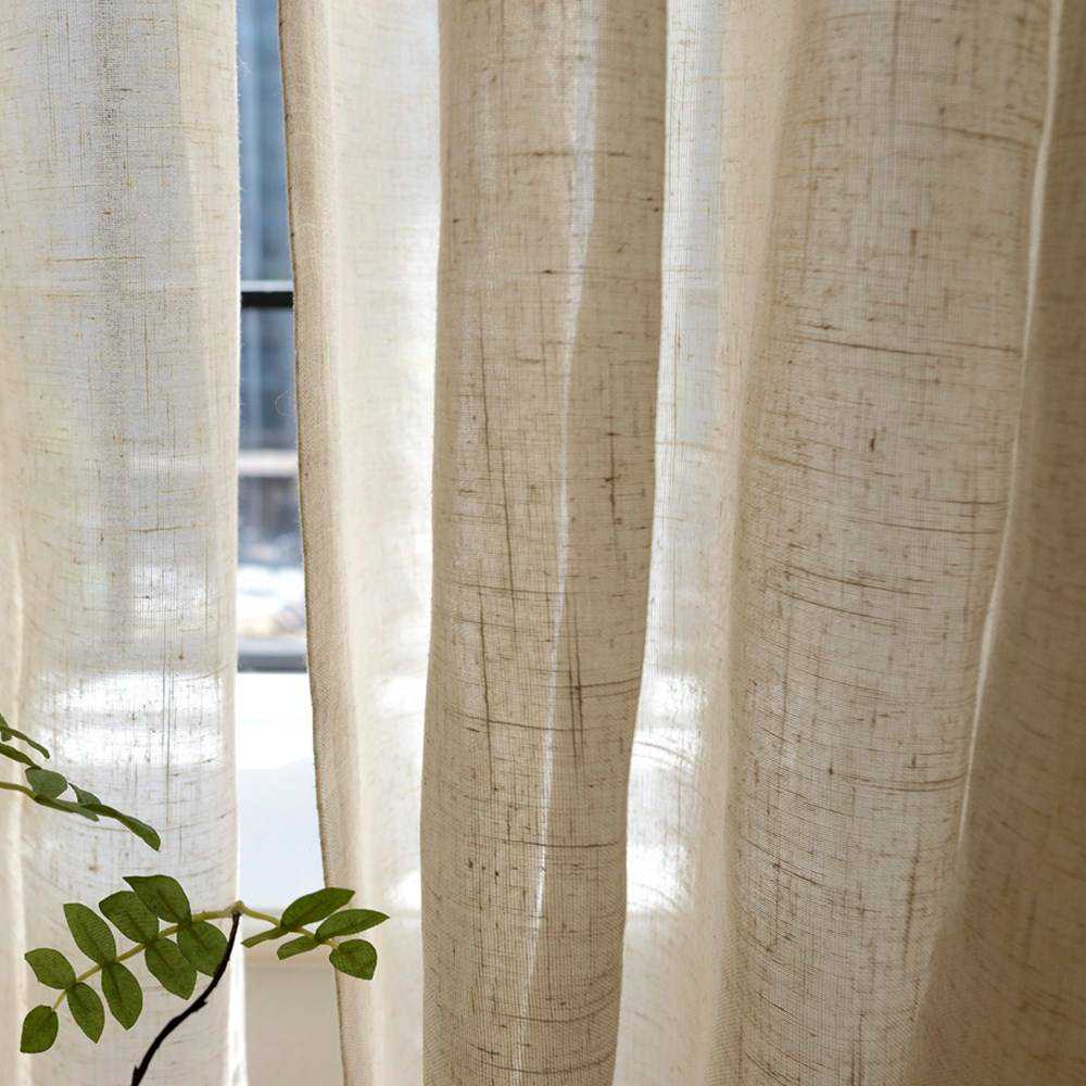 亚麻布织成的窗帘,从外观上看比较质朴,给人一种自然温暖的感觉,摸起来比较粗糙,手感较差,从功能来看,亚麻窗帘散热好,但遮光性差。价格适中,大概70-100元/米。