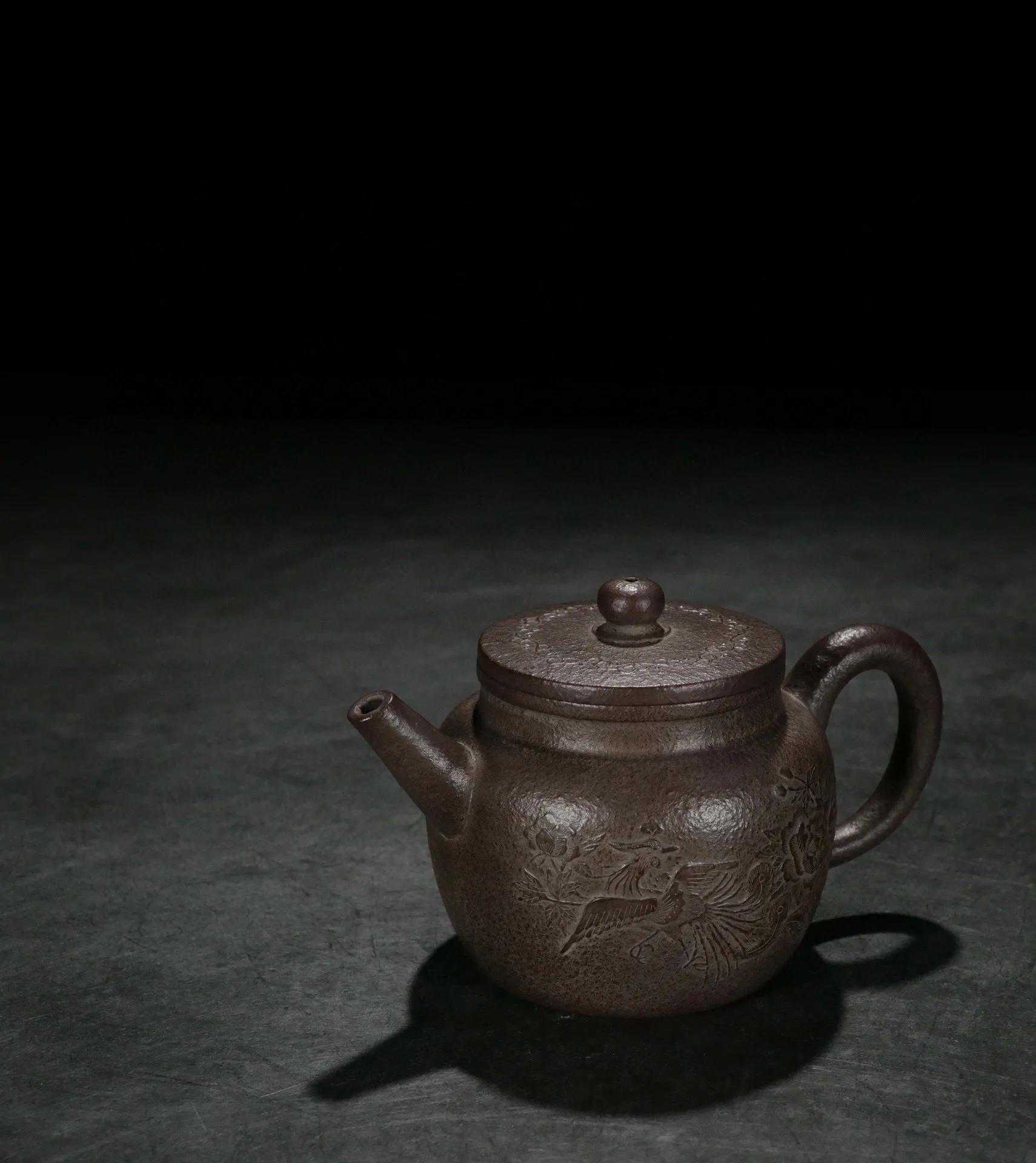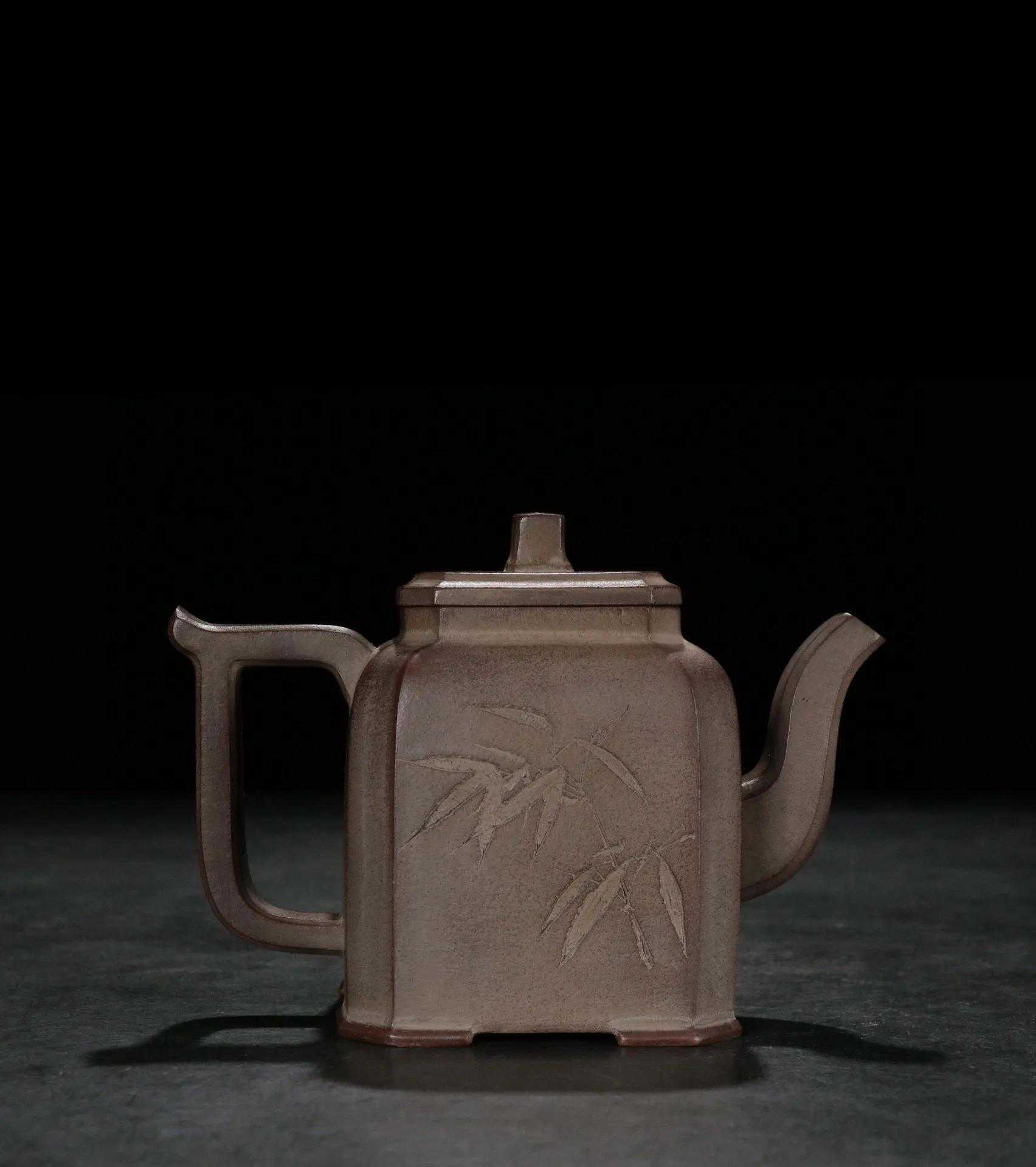 旧藏【林园】紫砂刻绘宫灯壶