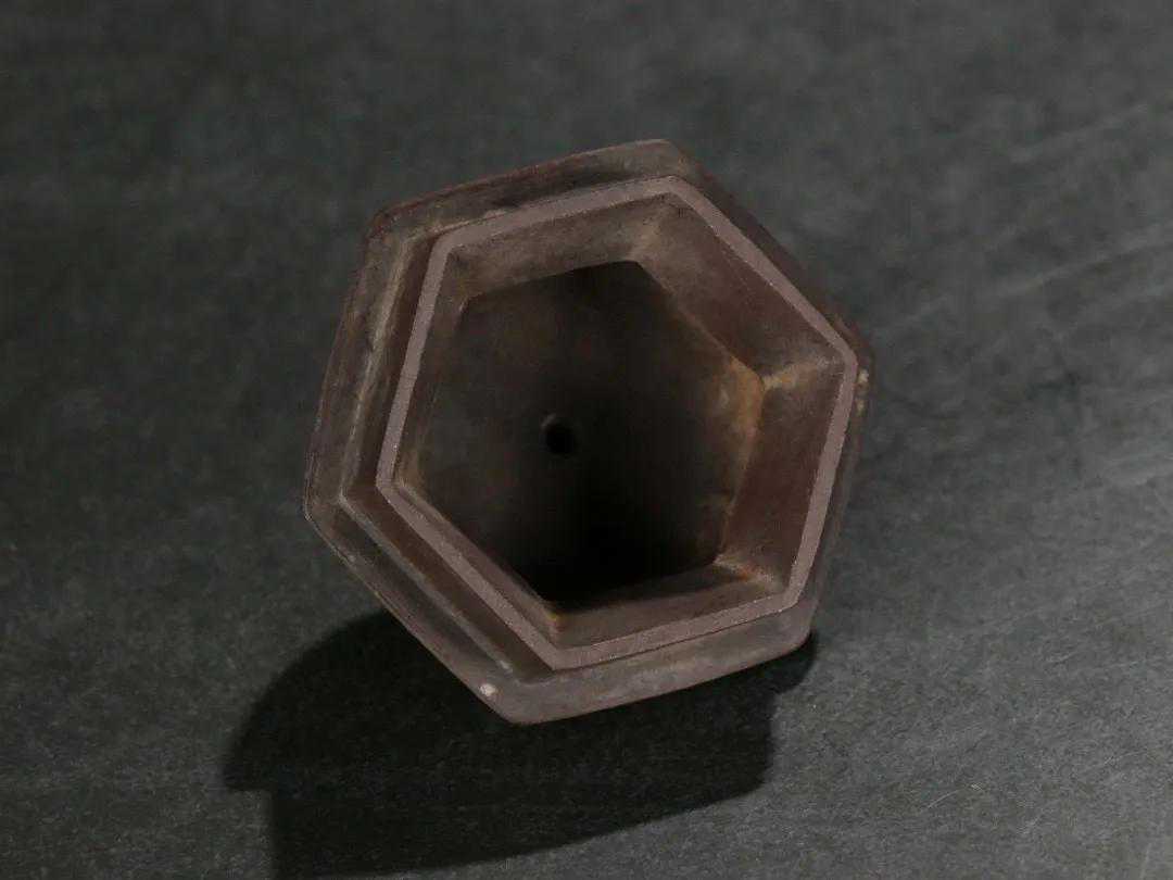 旧藏【子文】款紫砂泥绘纹六方龙蛋壶