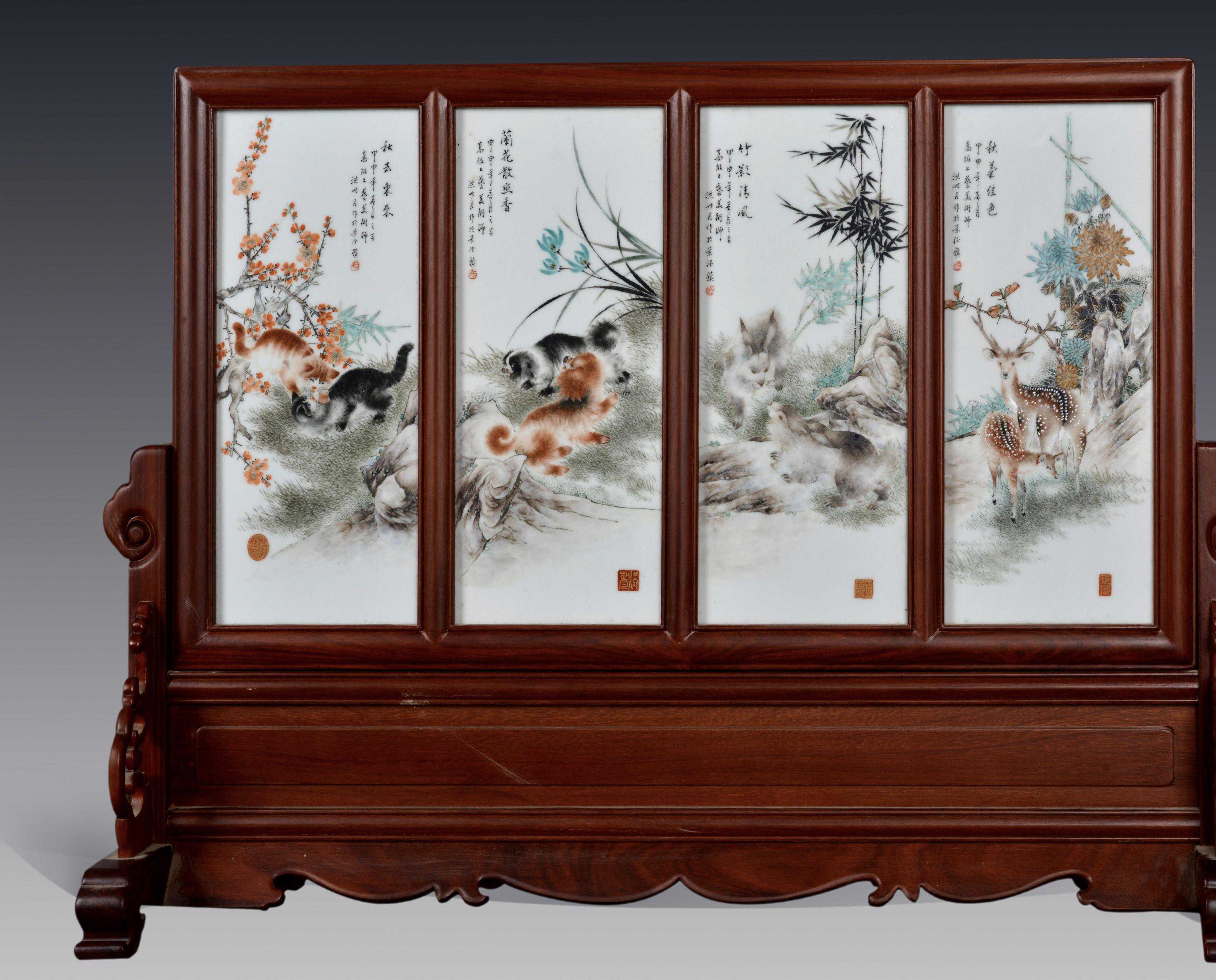 景德镇古彩瓷非遗代表性传承人洪爵振(左一)与爷爷洪世月(右一)合作《百鸟朝凤》瓷板