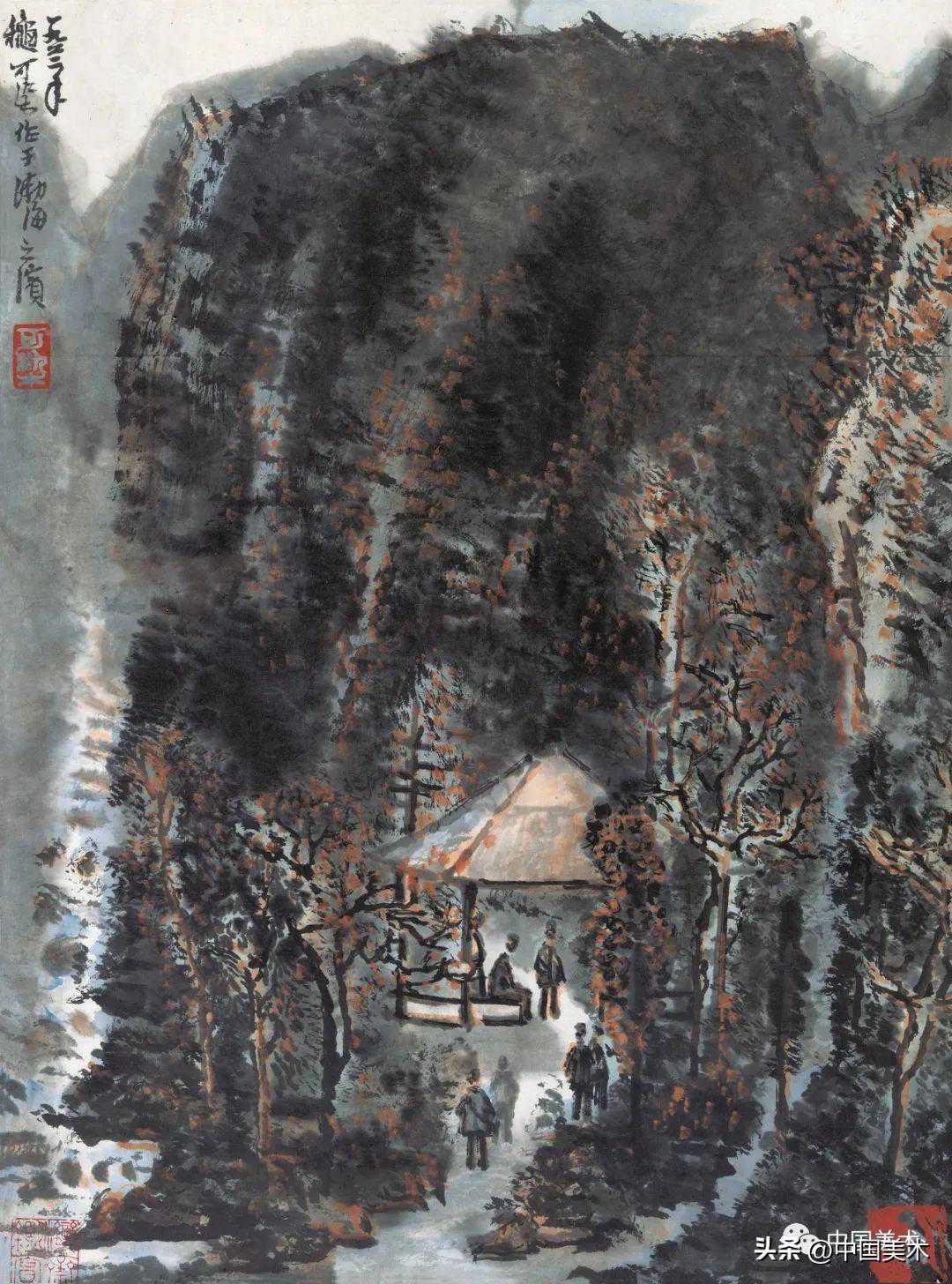 李可染山亭观瀑图