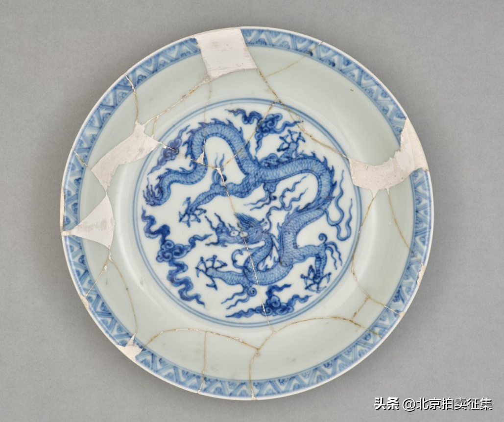 明正德青花云龙壬字朵云纹盘