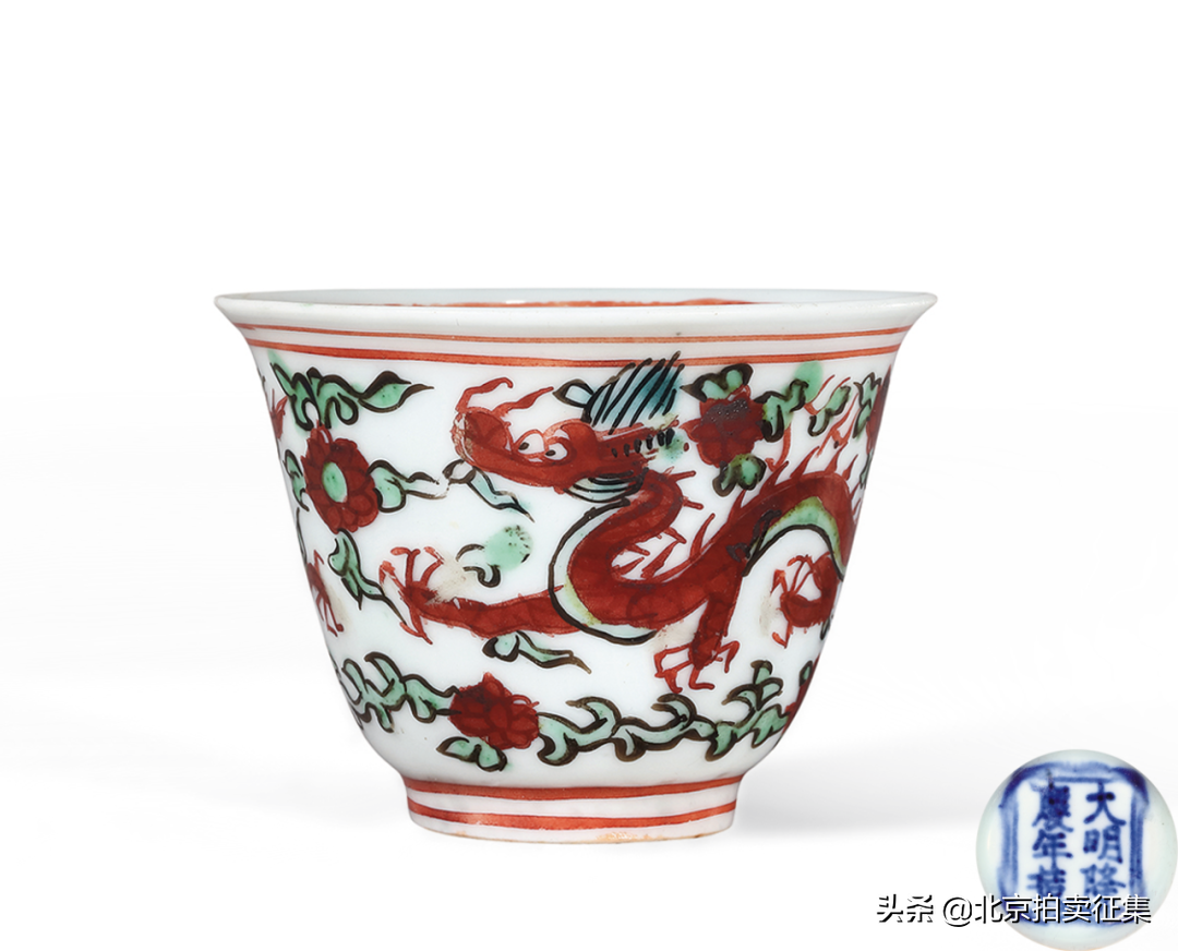 明隆庆青花红绿彩龙纹小杯