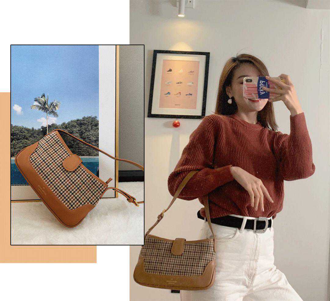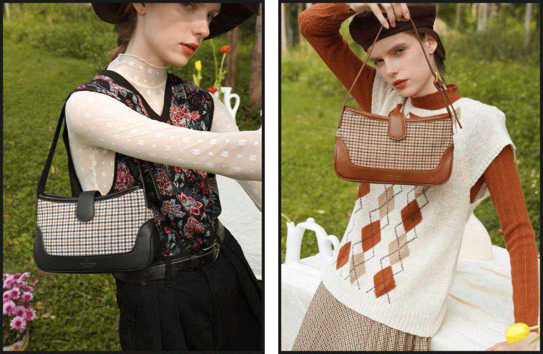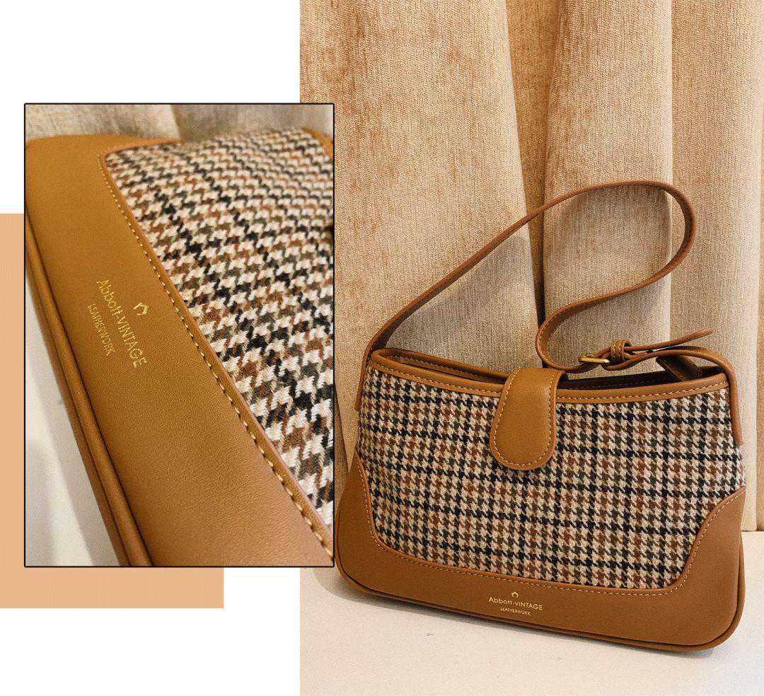 个人最爱Abbott家的招牌法棍奶奶包,千鸟格纹和皮质拼接,超耐看,适合在空旷乡村的花田里欣赏美景