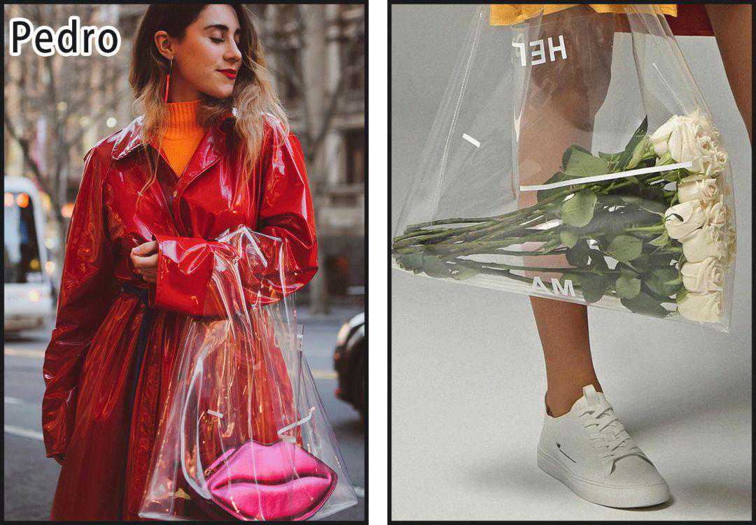 尤其是这个塑料袋子,是时尚博主们用来凹造型的神器。里面可以自由搭配各种handlebag,也可以放点好看的墨镜、口红啥的,用旧了还能拿去当买菜包…瞬间想对6000块的CÉLINE说声打扰了