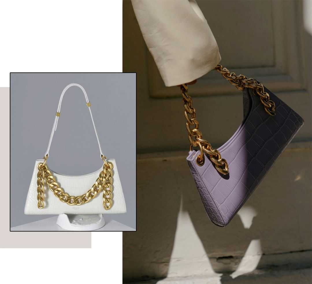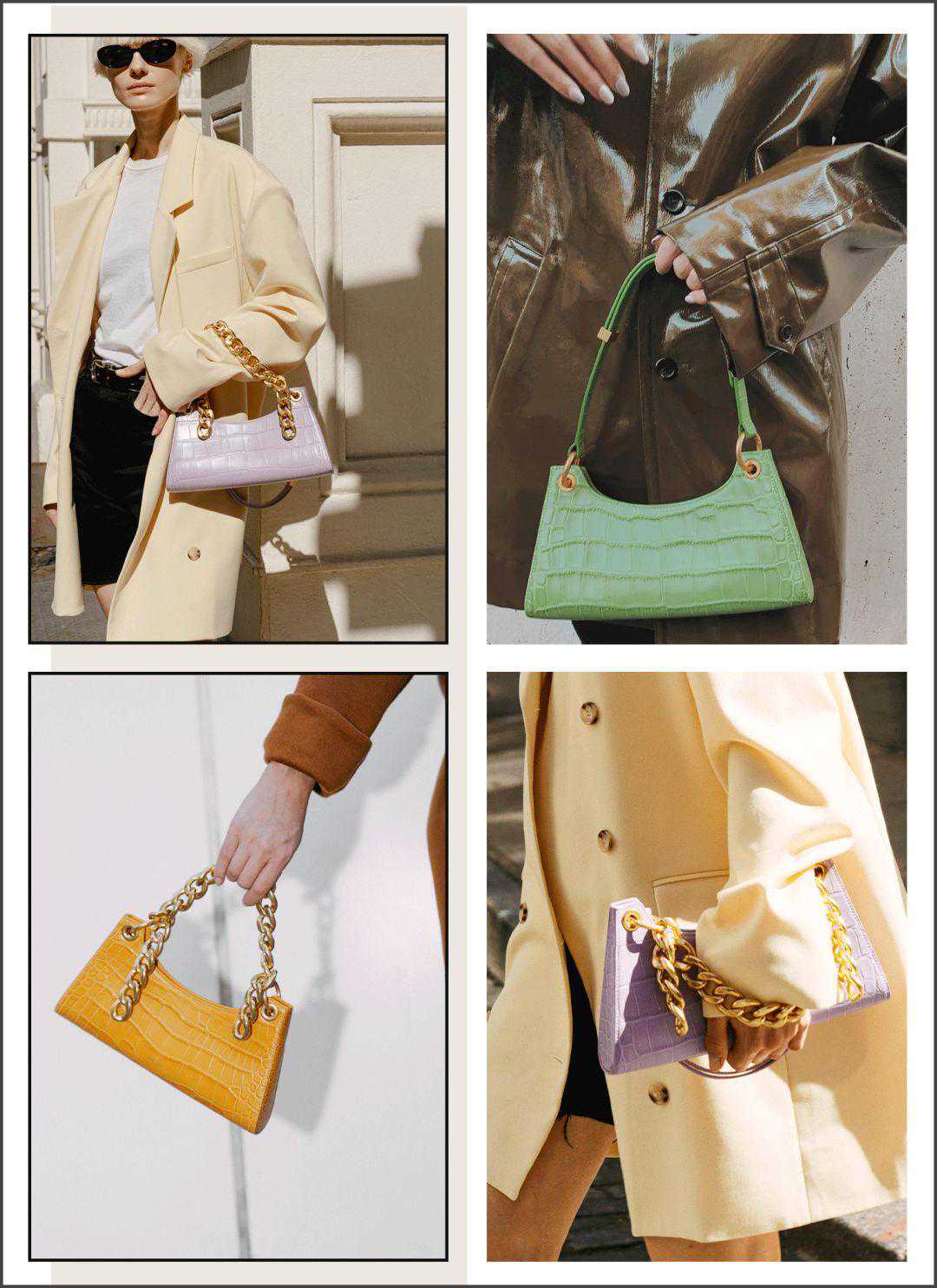 而APEDEMOD就把腋下包和粗链条结合起来,精准狙击我的心。它家的包基本上只有光面和仿鳄鱼皮两种材质,各种鲜艳的冰激凌色,无敌百搭