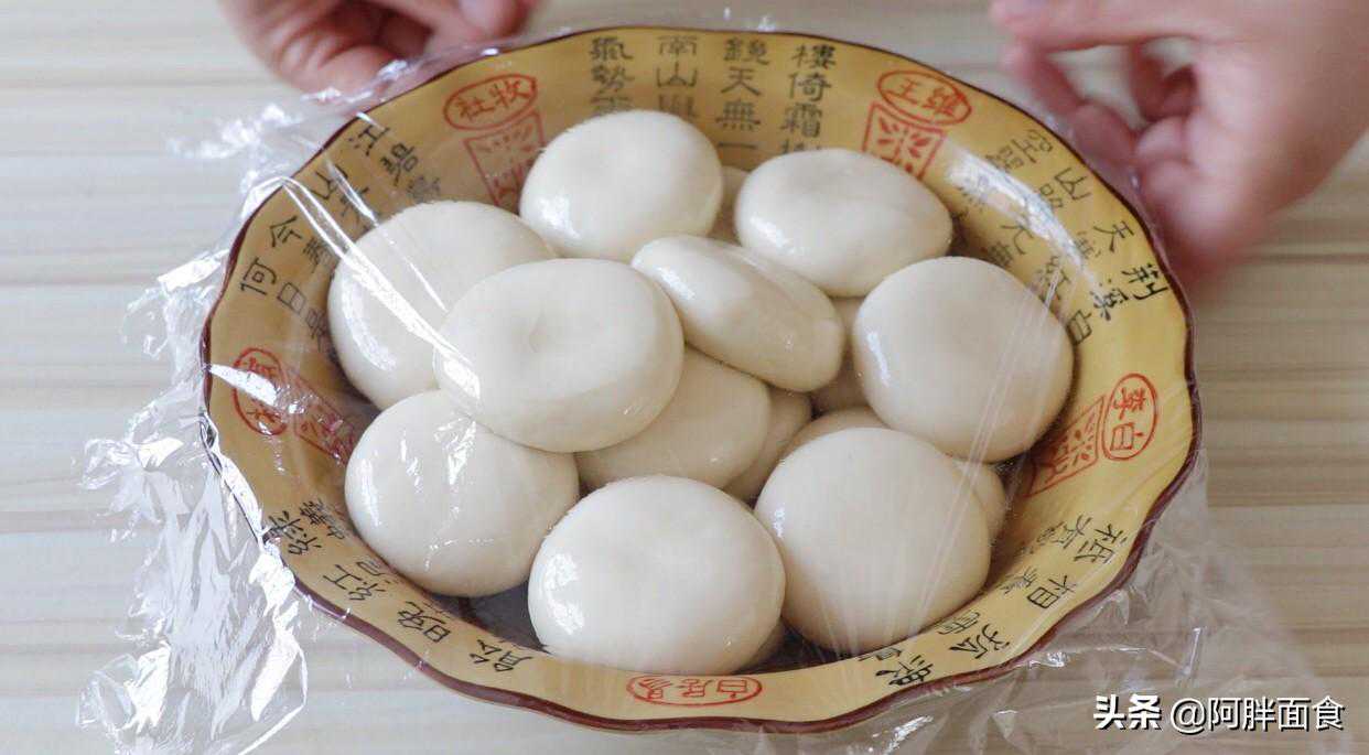 4,全部做好后,放再一起,盖上保鲜膜,防止风干,放在一边至少醒面40分钟,如果能够醒面1-2个小时,手抓饼效果是最好的哦。