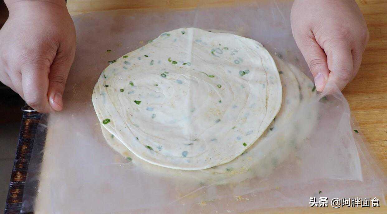 8,到这一步时,盖上保鲜膜,再松弛10分钟左右,这样做是为了好擀开。也是手抓饼好吃的关键步骤哦。