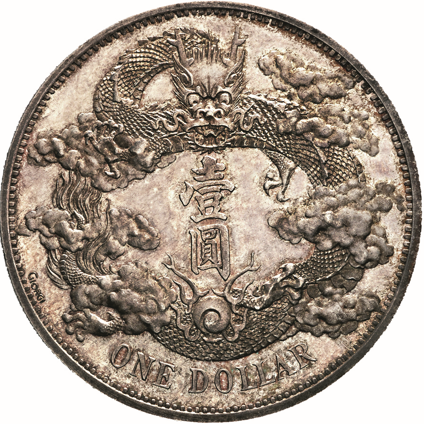 正式发行的宣统三年壹圆银币,有阳文签字,经评NGCMS63,于2012年在昆克拍卖亮相,以52万欧元成交。
