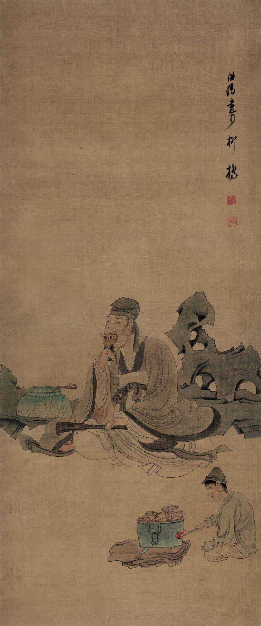 陈洪绶出生名门望族,自小就学习儒道思想,家道中落之后体会到市民阶层的生活,将这两种生活情感融入到他自己绘画之中,作品富有装饰性和世俗性的艺术表达,从而打破了文人和世俗的界限,形成了雅俗共赏的艺术风格。
