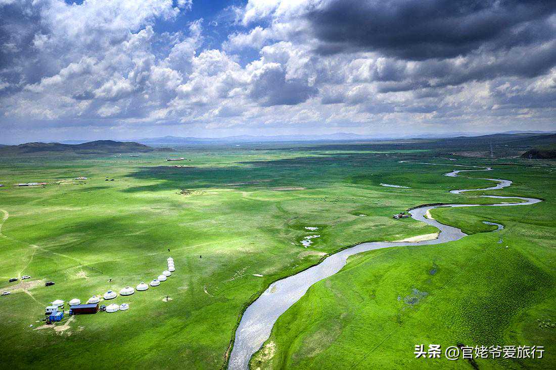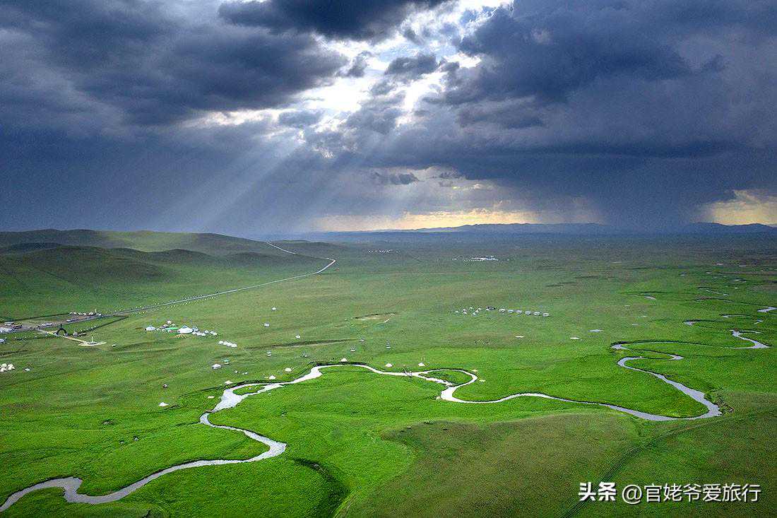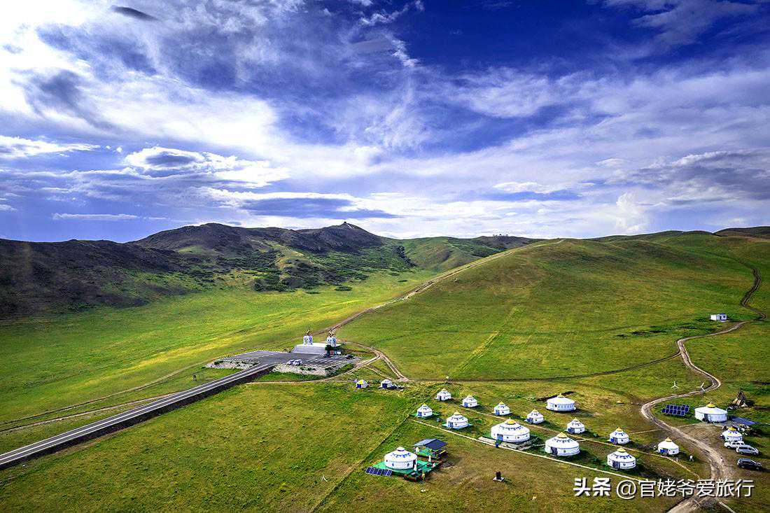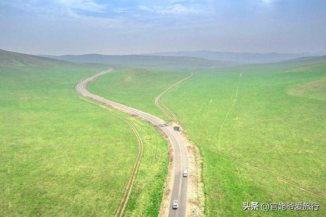 我想,既然敢叫“99号公路”,那景色一定会不错,果然如此。当我开车走在公路上,车非常少,两侧草原的景色非常美。尤其是与成吉思汗有故事的瞭望山和敖包,景色更美,航拍的视角更震撼。