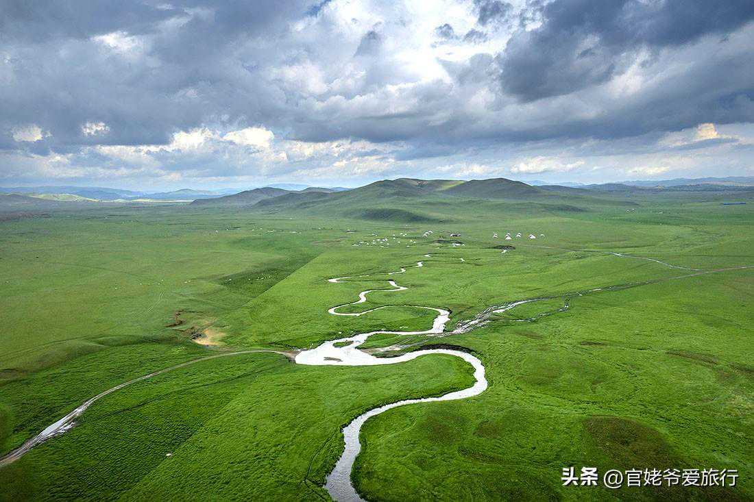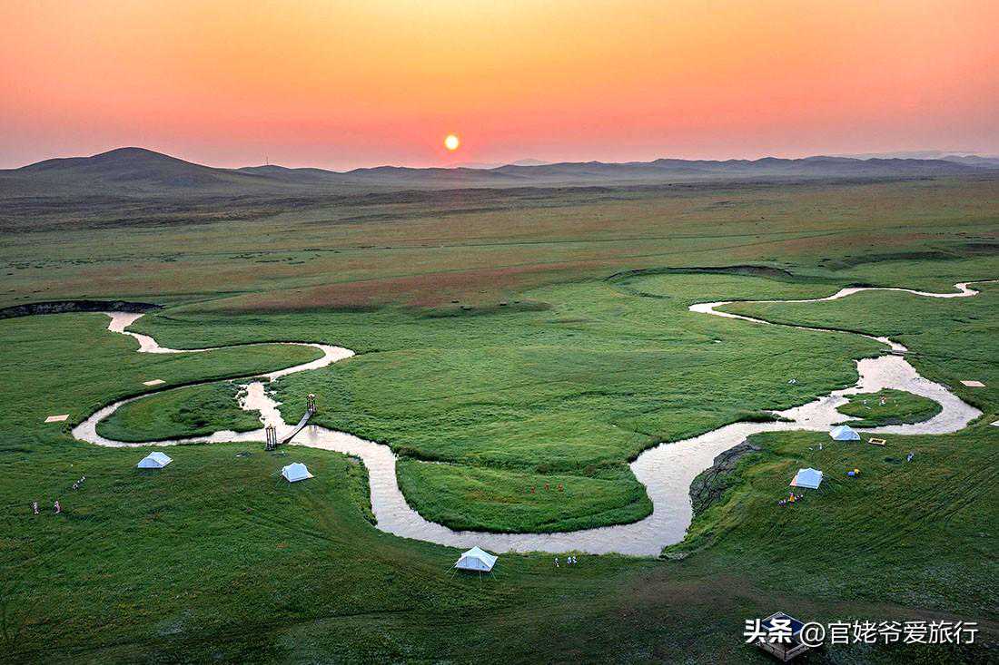 如果你是一位自驾摄影爱好者,车内可以休息睡觉,我建议你在游牧部落停车场驻车,这里的卫生间有水(卫生间晚上可能会关闭),这里绝对是拍摄日出日落的最好机位。巴拉嘎尔郭勒是东西流向,弯弯曲曲,河水旁有蒙古包或小帐篷点缀做前景,无论是航拍还是使用相机,都会拍出非常美的草原风光片。如果是住市区宾馆,50公里需要一个多小时车程,早起晚归在所难免。