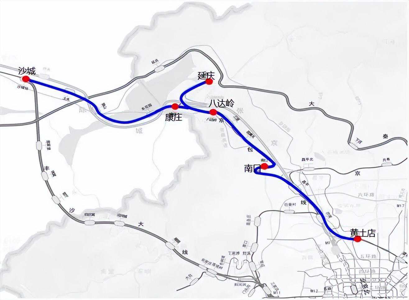 S2线由北京市昌平区黄土店站始发,途经昌平区,终点为延庆区的延庆站和河北省张家口市怀来县的沙城站。线路全长108.3公里,沿途停靠黄土店、南口、八达岭、延庆、康庄和沙城6站。其中,黄土店站可换乘北京地铁13号线及8号线。