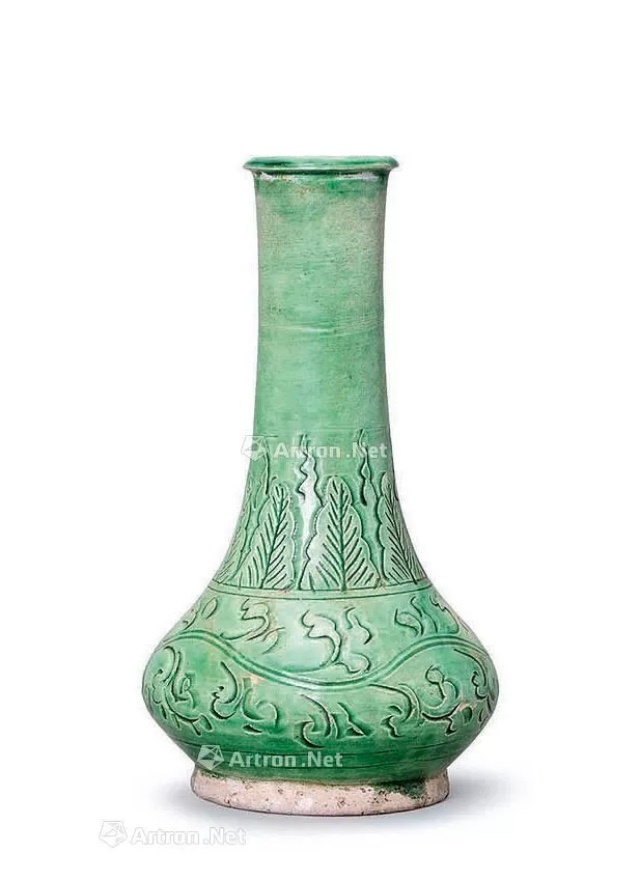 名称:邛窑绿釉刻花胆瓶