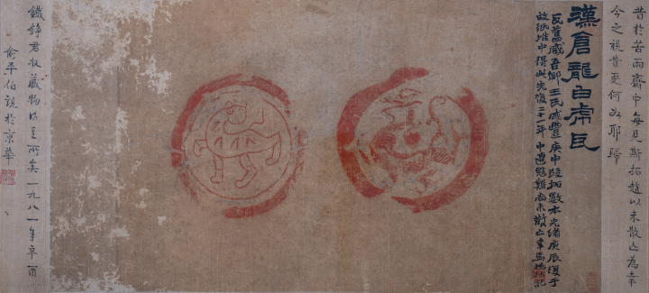 题汉仓龙白虎瓦当拓片赵之谦1880年37cm×70cm温州衍园美术馆藏