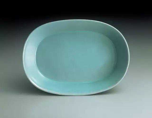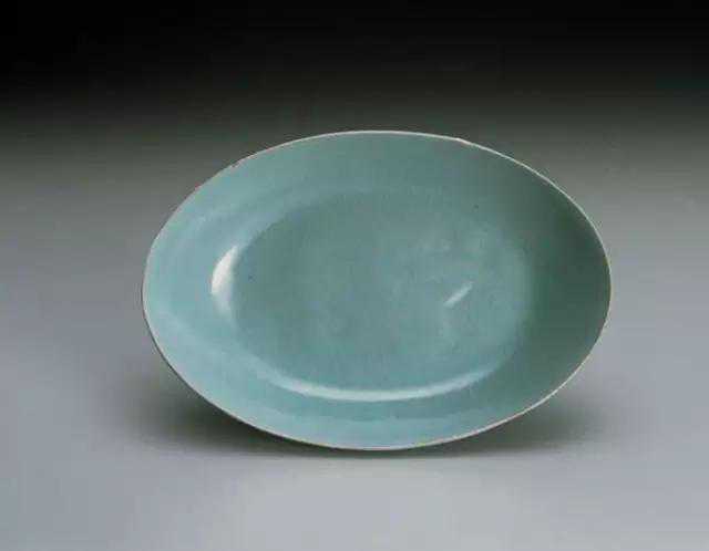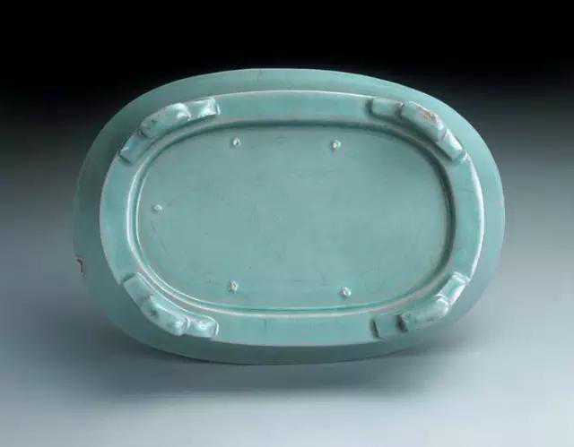器呈椭圆形,口微敛,平稳无足,足底凹入成一圈形,中有三支痕。器物内心有印花装饰,器型、装饰方式和尺寸与藏于英国伦敦大学大维德基金会的一件汝窑粉青椭圆小洗十分相似。绘制于十八世纪,以清宫收藏为描绘主题的《燔功彰色》也收录有一件“汝窑舟形笔洗”,对照图册和两件器物,发现图册上笔洗之口沿边缘出现有一金彩修复点,和大维德粉青椭圆小洗特征相同,可以知道《燔功彰色》此页记录的并非藏于台北故宫的青瓷椭圆小洗,而是藏于大维德基金会的那一件。