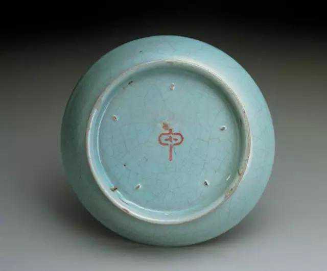 侈圆口、浅斜壁、平底、圈足微外撇。底部有五致钉痕,中心刻有“甲”字篆款。除本件外,台北故宫尚藏有一件汝窑青瓷盘和一件汝窑青瓷圆洗在器底也刻有“甲”字篆款。此二件同时刻有乾隆御制诗,根据诗文内容,有些研究者认为“甲”字是古时划分瓷器等第但刻款。