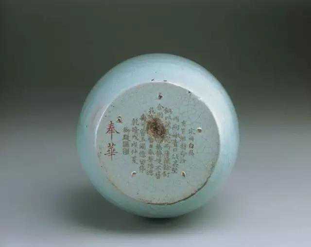 这件汝窑磁碟是现存三件刻有奉华款的汝窑瓷器中,唯一的一件盘碟类器皿。对照雍正七年(1729)活计档匣作一条,很可能即是汝窑清单中所指的奉华字圆笔洗。