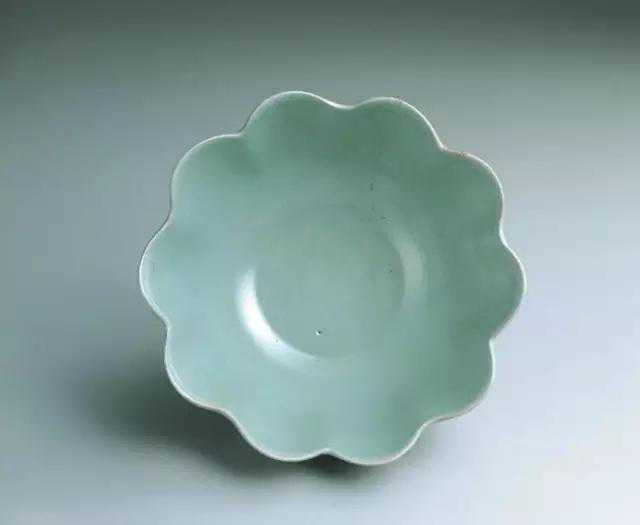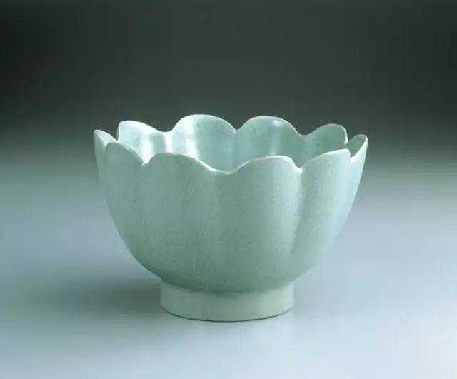 十瓣莲花口碗、壁弧且深、上侈下敛、平底、圈足高且足径略大。器底有五细小支钉痕。温碗是盛行于晚唐至宋代的温酒器具,一般来说都和执壶配成一套。这件藏于台北故宫的汝窑青瓷花式温碗,是目前汝窑存世作品中此类器形唯一的一件。