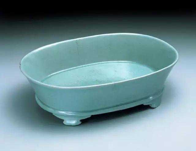 椭圆形盆、侈口、深壁、平底、底足间突出一圈窄边稜、四足、足呈云头形。全器满釉不露胎,仅在器底留下五个支钉痕。目前传世汝窑水仙盆共有五件,一件藏于日本大阪市立东洋陶瓷馆,其他四件都在台北故宫博物院。