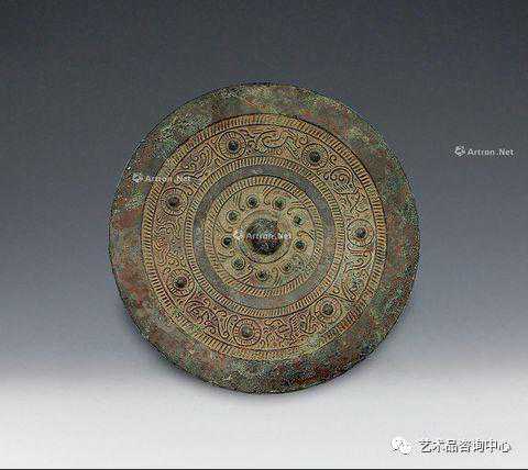 青铜镜是一种古老的由青铜所制的使用器物,也是精美的工艺品。目前发现最早的青铜镜,是距今4000年左右齐家文化墓葬中出土,直径6厘米,厚0.3厘米,镜面有光泽,镜背中央有一个桥形钮,未施纹饰。