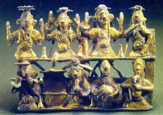 出土了一件鎏金八人乐舞扣饰