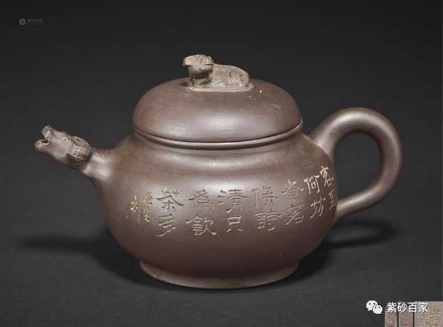 清晚期·愙斋款李宝珍制潜陶刻紫泥觚棱壶