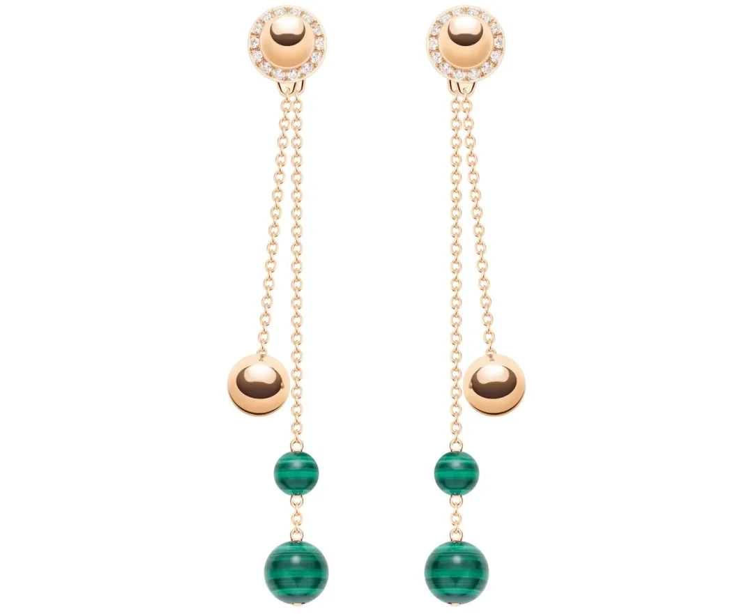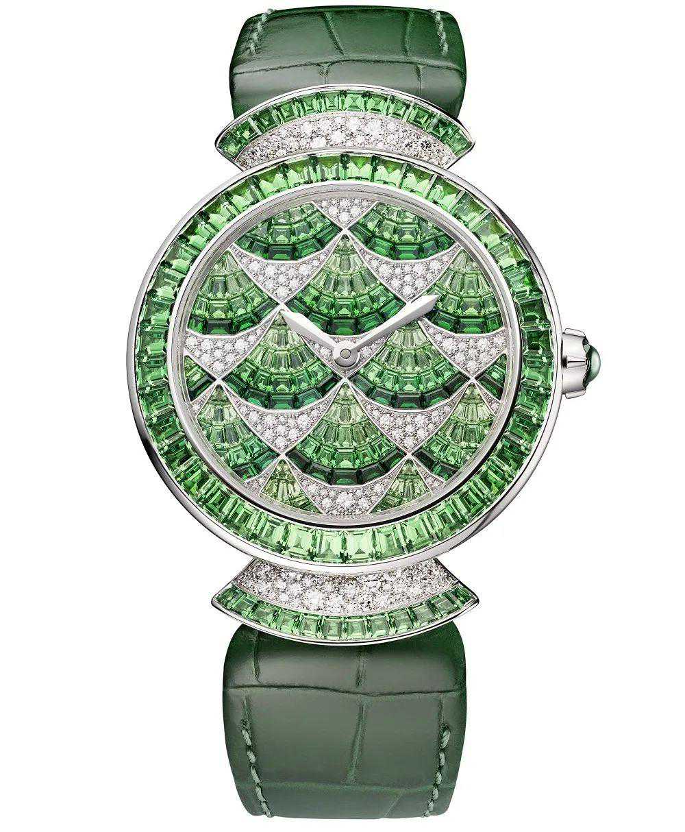 而卡地亚ParisNouvelleVague系列的孔雀石流苏则全部都是同样的同心圆结构。不用想也知道,要找到这样纹路的孔雀石是多么困难的事,不仅需要大海捞针一般寻找的毅力,浪费掉的原料甚至是所选用的原料的几十倍之多,而这还只是宝石级孔雀石的基本要求。