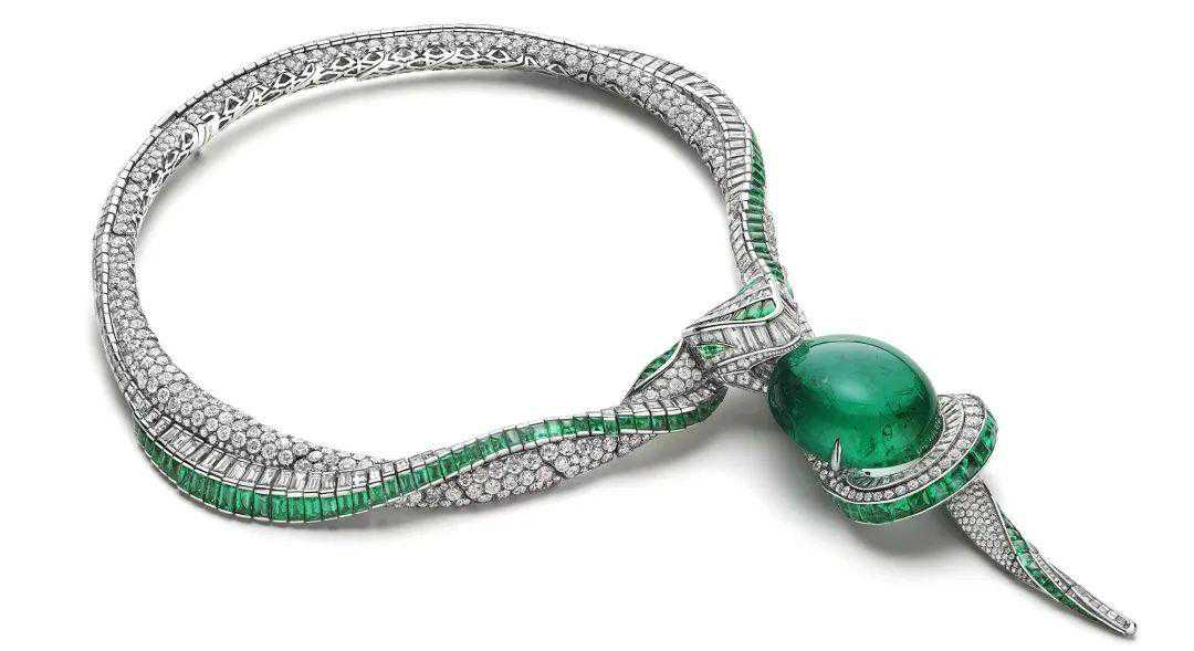 孔雀石搭配上blingbling的钻石,金绿配色非常高级,谁能拒绝这样一条项链呢?