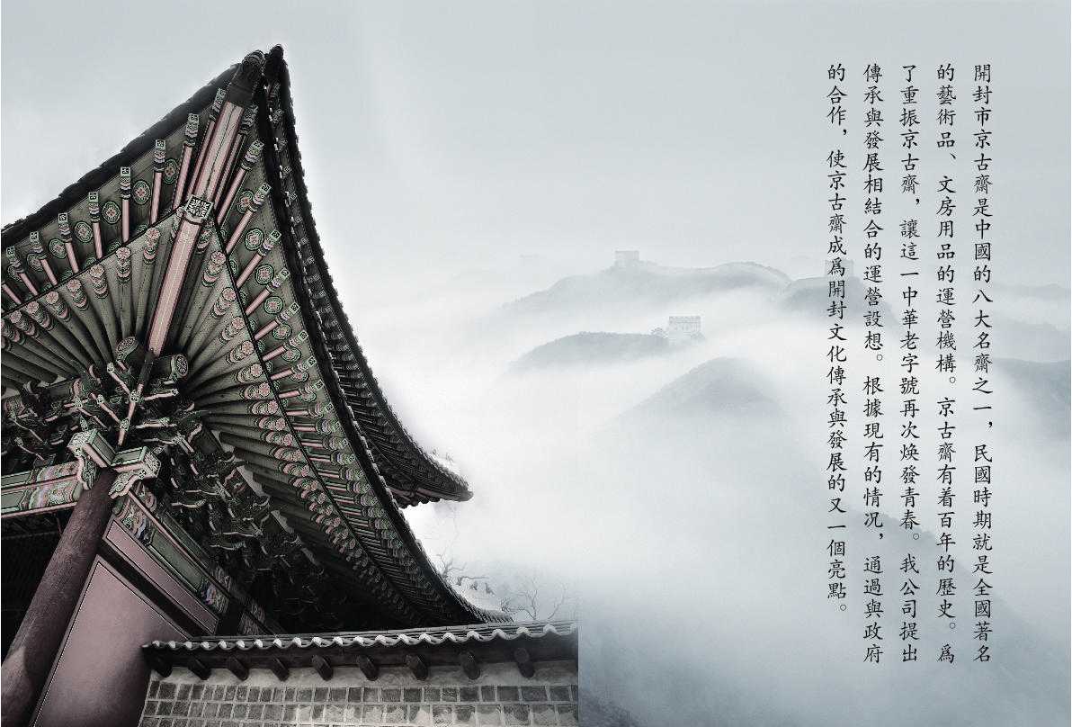 京古斋历经风雨,前后已有200多年的历史。清代中期主要以经营文房四宝为主。之后,京古斋迎来三次巨大的转折。1961年秋,在政府和书画家的努力下,秉承百年老店传统的京古斋在南书店街路西以新的模式复业。当时,京古斋就是品牌,人们很喜欢它。书画爱好者和书画名家大都以收藏笔管上刻有“京古斋鉴制”字样的名笔为荣。1978年,京古斋在鼓楼广场西北隅重新复业,在开封市书画界知名人士刘梦璋、桑凡和王胜泉等的领导下,当时揭裱、装裱技艺闻名全国。