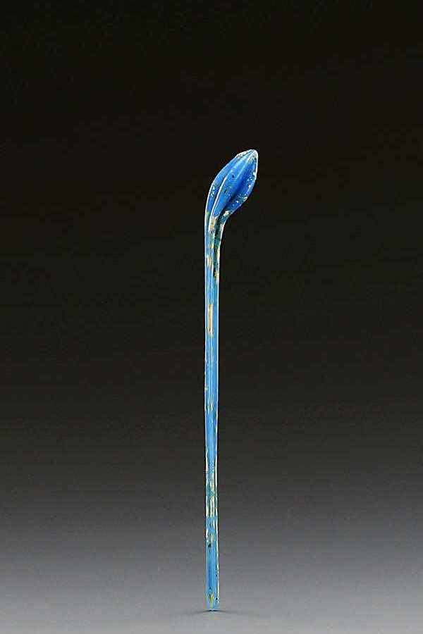中国古代琉璃的美,不在于复杂,而恰恰在于简洁:如这支淡蓝色宋代发钗,外观上冰雕玉琢而不失温润朦胧,其神采明澈见性而尽显雍容淡然。