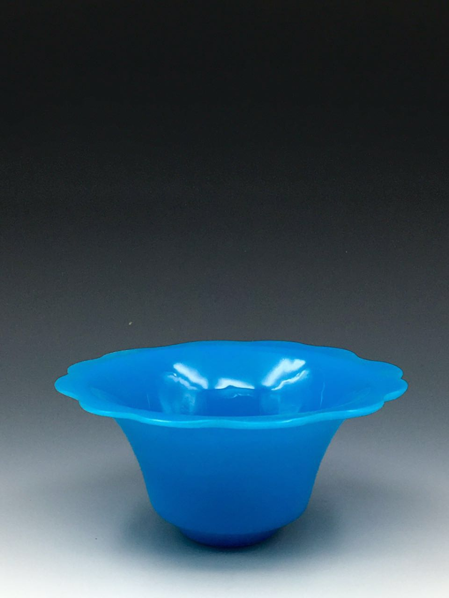 蓝色玻璃以氧化钴为着色剂烧炼而成,配比度的不同会产生深浅各异的色调,其中较浅的天蓝和孔雀蓝最是赏心悦目。