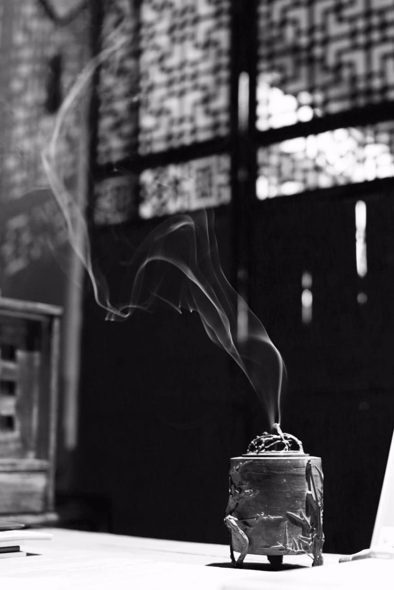 牧之在书案前悉心地焚香,他身材偏瘦、眉眼平和、性情谦逊,浑身上下没有一丝一毫咄咄逼人的气息,初见即如多年老友般自然亲切,令人心生欢喜。